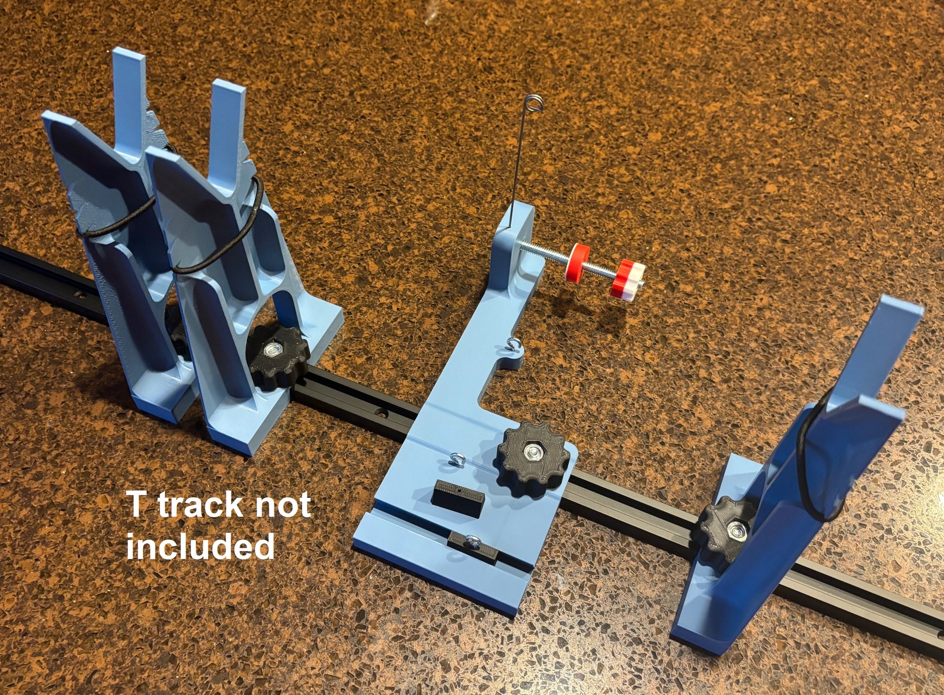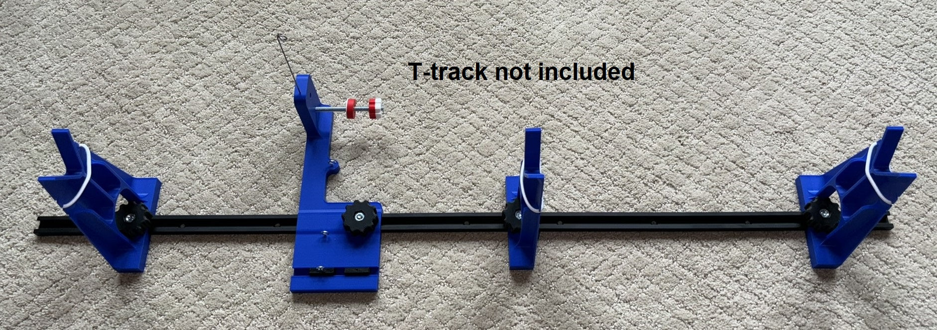 Rod stands and the thread carriage are easily aligned and secured to the T track using included 1/4-20 bolts and easy grip knobs. This enables easy setup, tear down and packing for easy transport. Great for instructors teaching classes as well as builders looking for upgraded features in a rod hand wrapping station.